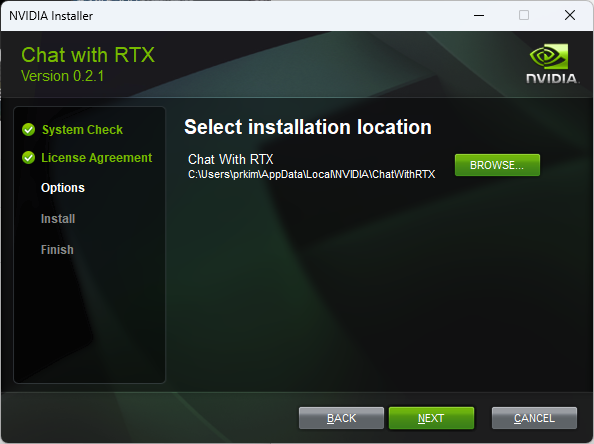 다운로드를 하게되면 ChatWithRTX_installer_3_5.zip이라는 압축 파일을 생깁니다. 압축을 풀어주게 되면 ChatWithRTX_installer_3_27_patch_v2 폴더를 확인할 수 있는데 들어가셔서 setup.exe 파일을 실행시켜줍니다.
